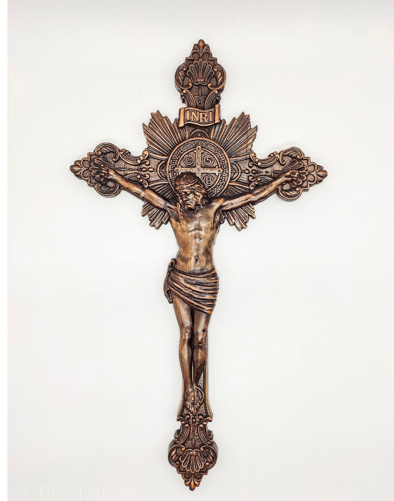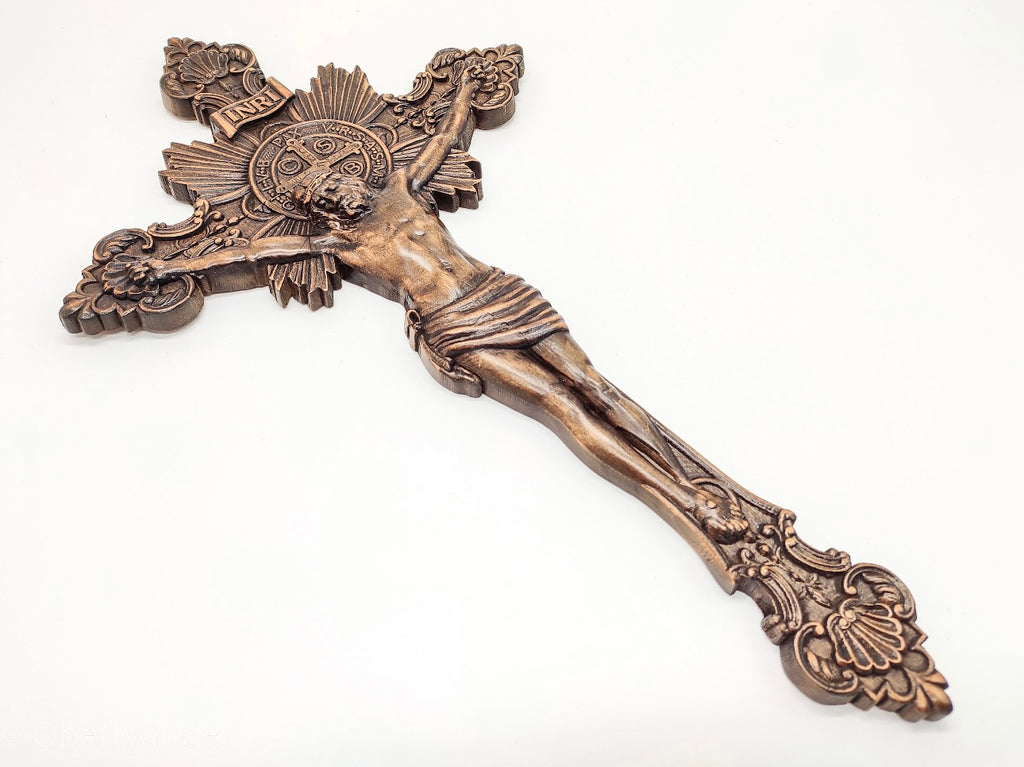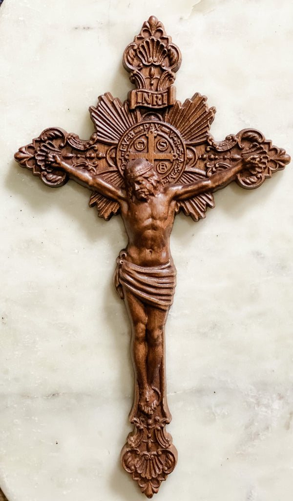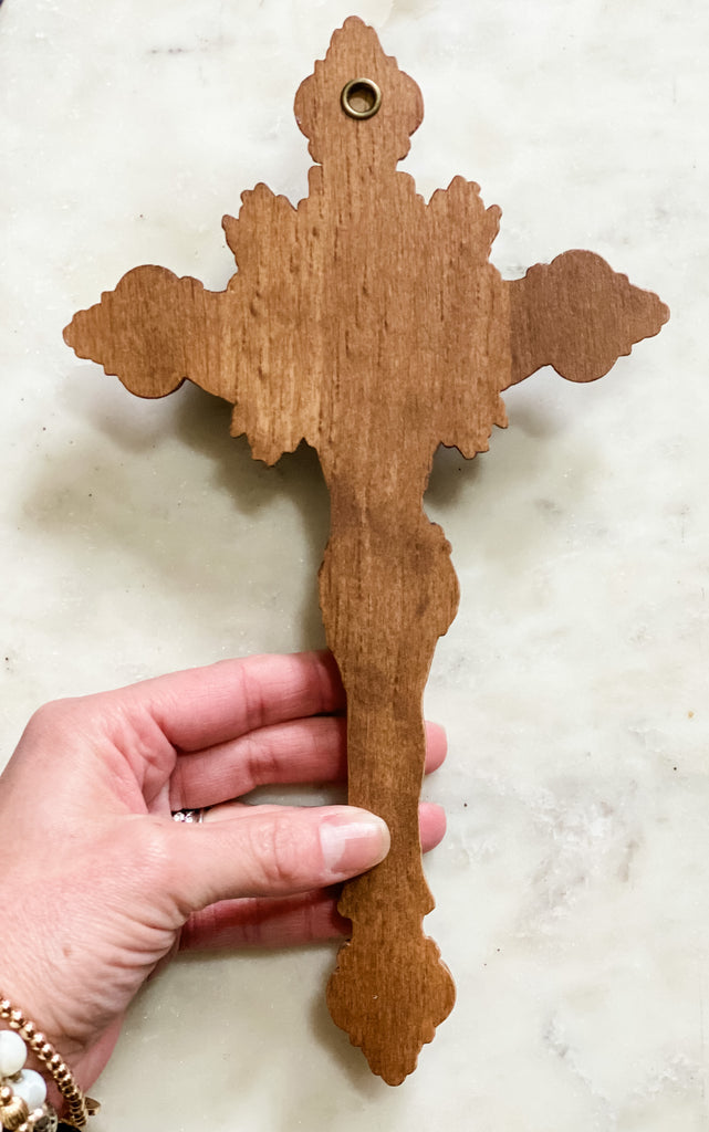 This beautiful wooden crucifix carved from solid maple is gorgeous and will truly be a statement for your home. Each crucifix is carved in Ukraine and sanded and varnished by hand. As such, there will be slight variations from one to the next.
