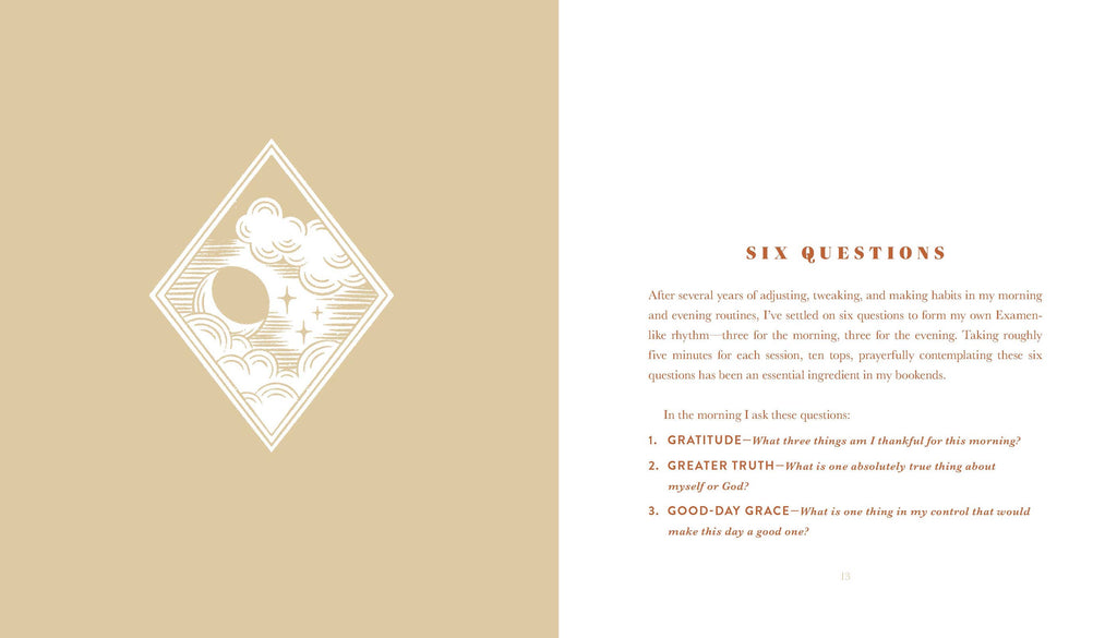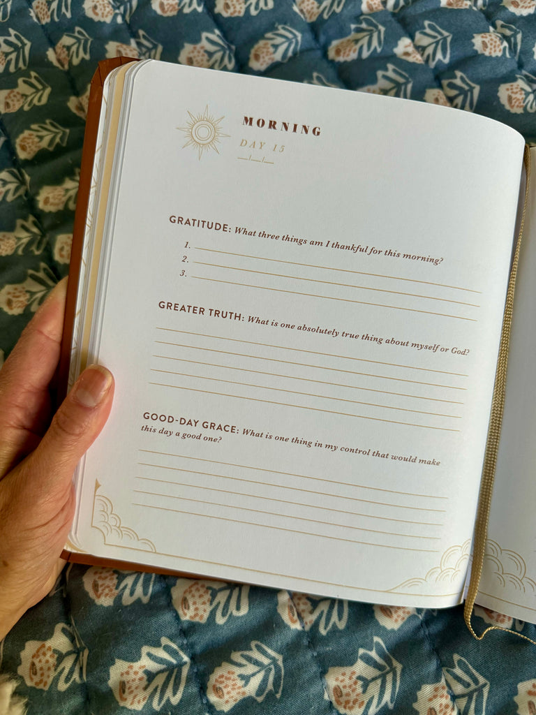 This easy-to-use journal encourages readers to bookend each day with short, personal reflections that bring insight and intentionality to their busy and unpredictable lives, focusing on gratitude, greater truth, grace, and more.