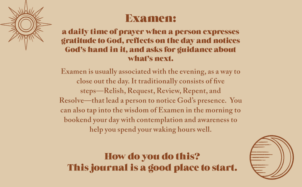 Derived from the well of Ignatian Spirituality, this book helps you go through your day with God by your side from morning until nightfall. By following the simple prompts of this journal, taking just a few minutes at the start and end of your day, you can start your day with intention and end your day with a thoughtful reflection on what went well and what needed improvement. The book will help you prayerfully and thoughtfully as m the Holy Spirit to guide you on how He wants you to spend your day and then at the end, to identify prayerfully, where God was present in your day and what needs His touch and healing?