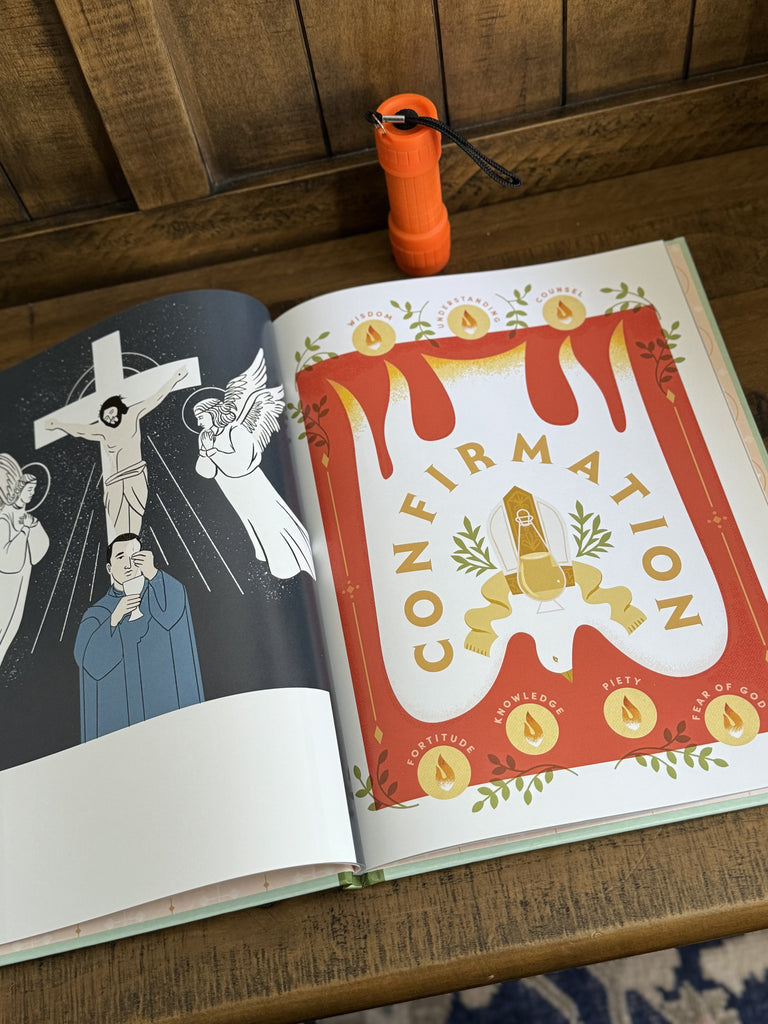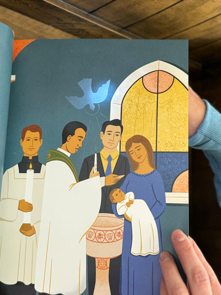Light of the Sacraments is a new, interactive, light-based book that teaches readers ages 4-12 about each of the seven sacraments with excerpts from Sacred Scripture, fun and meaningful rhymes, and a series of hidden images that can only be revealed by shining a light behind each page.