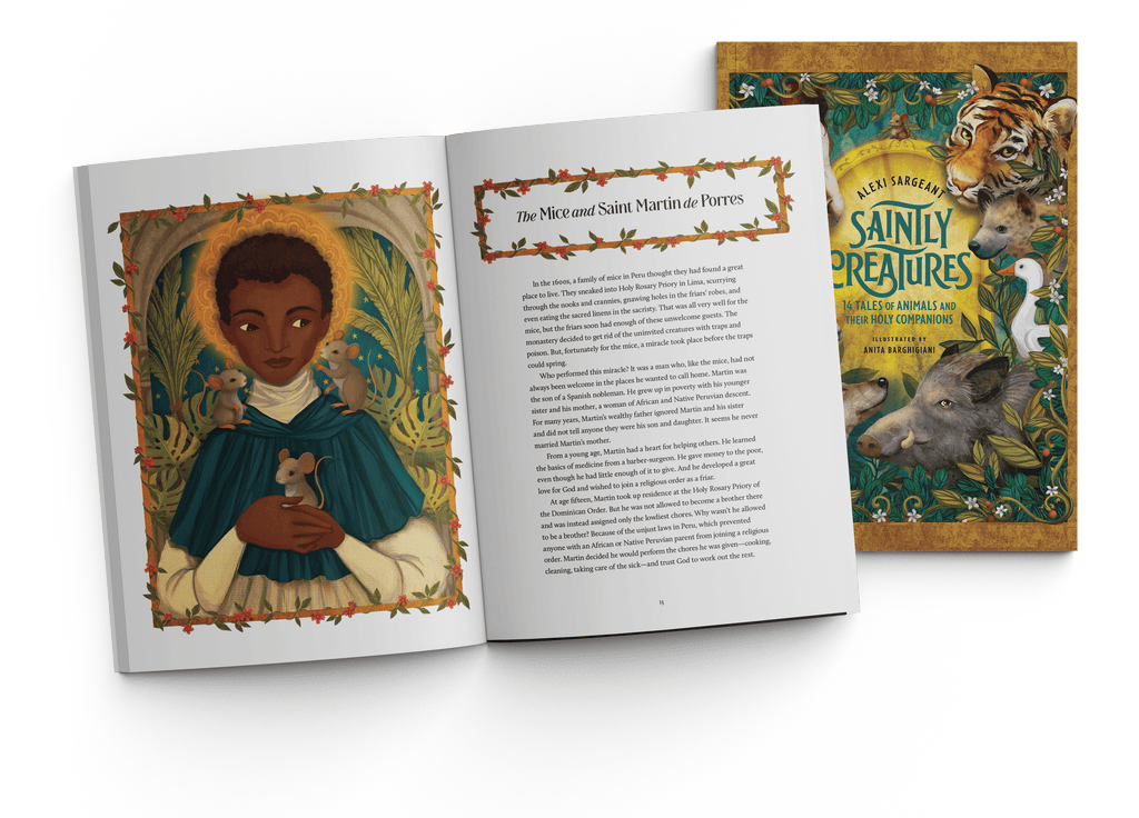 Discover the exciting tales of God’s creatures and the holy men and women they encountered! You’ll read about an enormous dog who protected a priest from an ambush, a tiger who shared his cave with persecuted Korean Christians, a dangerous wolf who was tamed by an Italian friar, a boar who was rescued from hunters by a wise Irish abbess, and many more. Each of these fourteen tales shows the heroic virtue of the saints and inspires young readers to faithfully follow Jesus. With breathtaking full-color illustrations, this storybook will become a beloved family read-aloud. It is a perfect gift from parents, grandparents, or godparents to introduce the young reader to the saints!