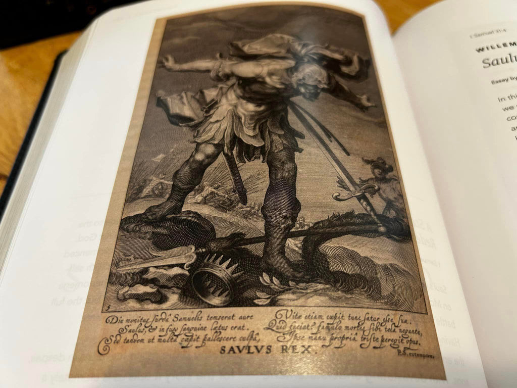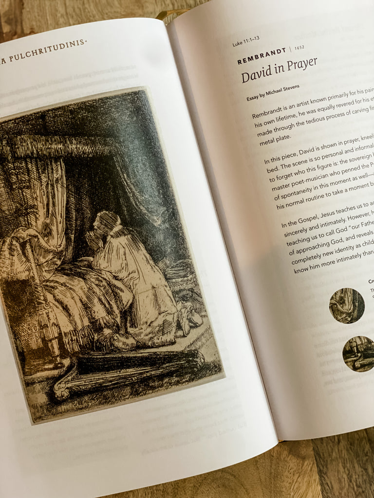 This Bible will eventually be a rich, heirloom collection composed of 7 volumes. The first five are available now. It is available in three different binding styles: leather, hardback or paperback. Each exquisitely crafted. We carry the leather bound in store, but are happy to order you either the hardback or paperback version if you prefer. Please just send us an email to create the order.