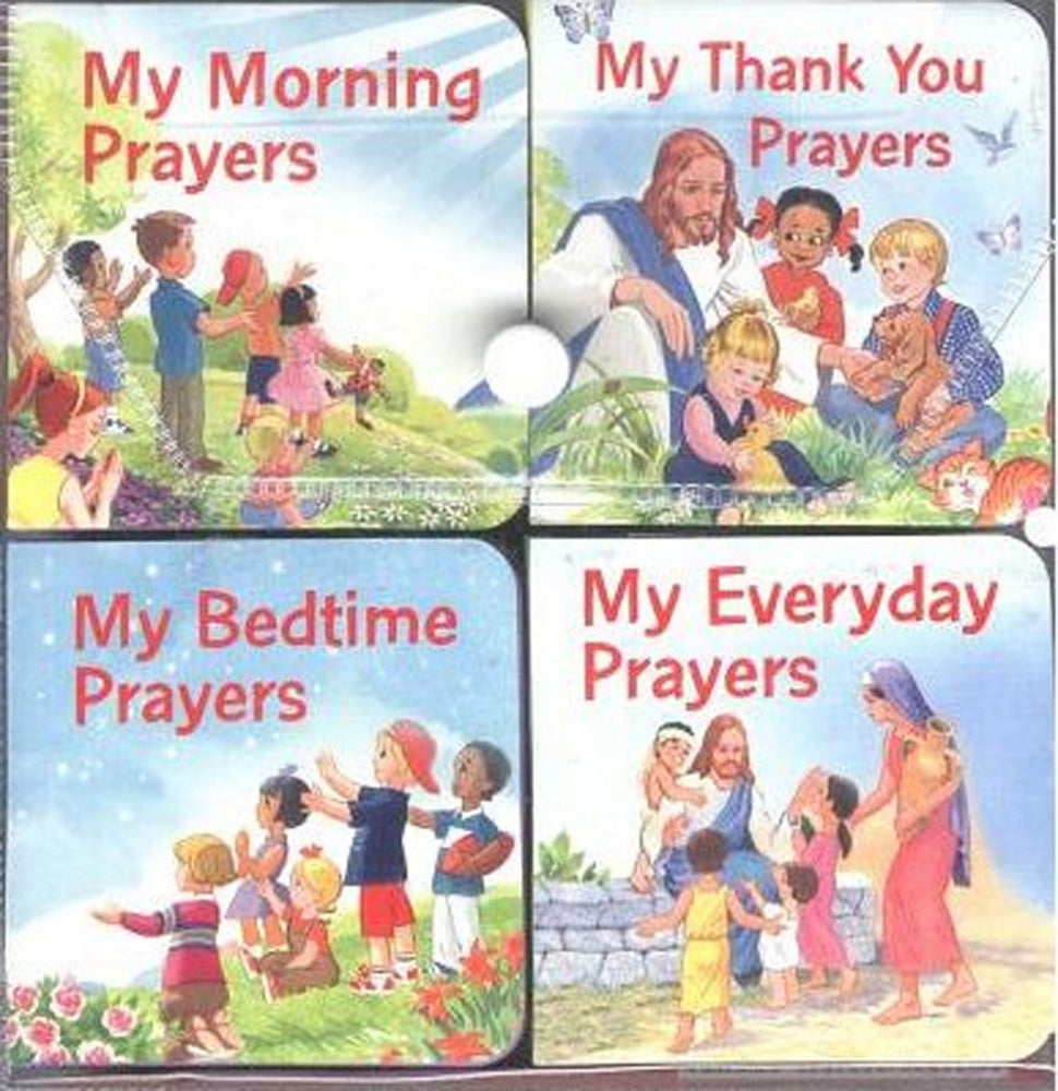 The My Catholic Prayer Treasury books are made of a lightweight, brightly colored material and are vividly illustrated in full color. The four books are packaged in a clear vinyl case that keeps the set neatly together. Each book has 10 pages.