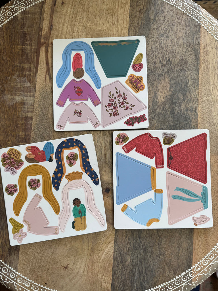 Step into a world of faith-filled fun with the Mary Magnet Playset. Inside the compact magnetic tin, your child will discover 28 vibrant mix and match magnets to dress Mary up. Features outfits for the following names of Mary but all pieces are completely interchangeable so she can be dressed up in many different ways!