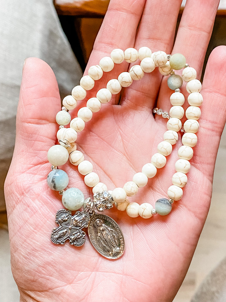 Carry a rosary with you wherever you go. Our beautiful rosary bracelets feature a brass or sterling silver miraculous medal, and a beautiful, 4-way scapular cross. They make great gifts for all ages and are a stylish reminder to pray your rosary every day.