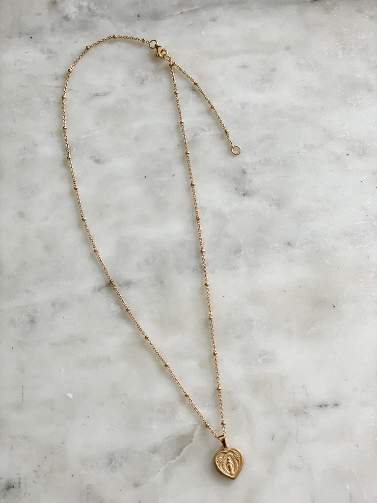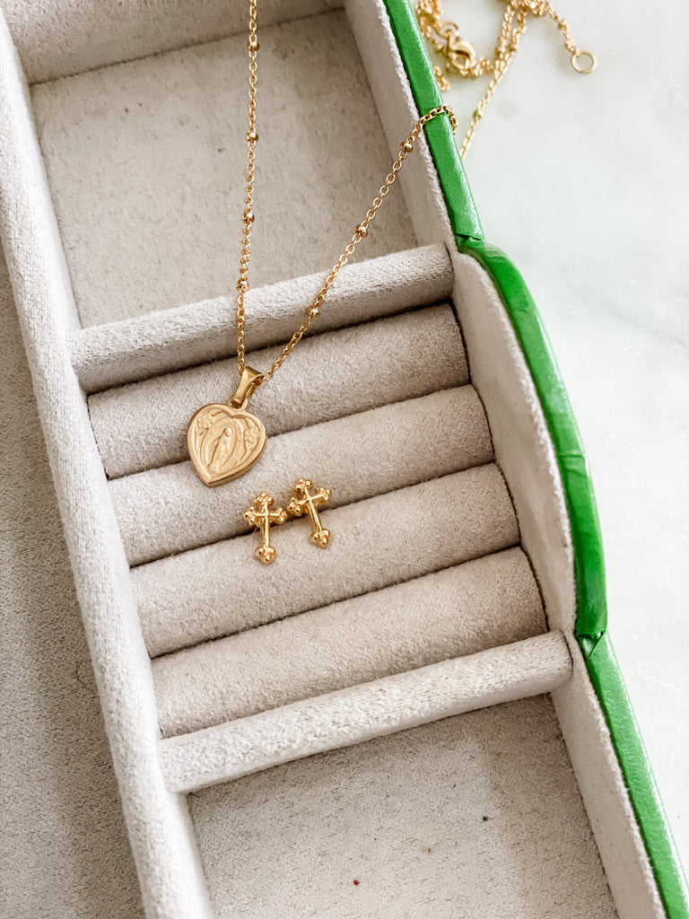 This sweet little Miraculous Medal is dainty and just lovely. It would be equally as beautiful standing on its own, or layered with other necklaces. Showcase your love for Our Lady with this dainty medallion necklace. The back has the traditional Miraculous Medal backing stamped on it. This necklace would make a gorgeous gift for any young lady for her First Holy Communion or Confirmation.