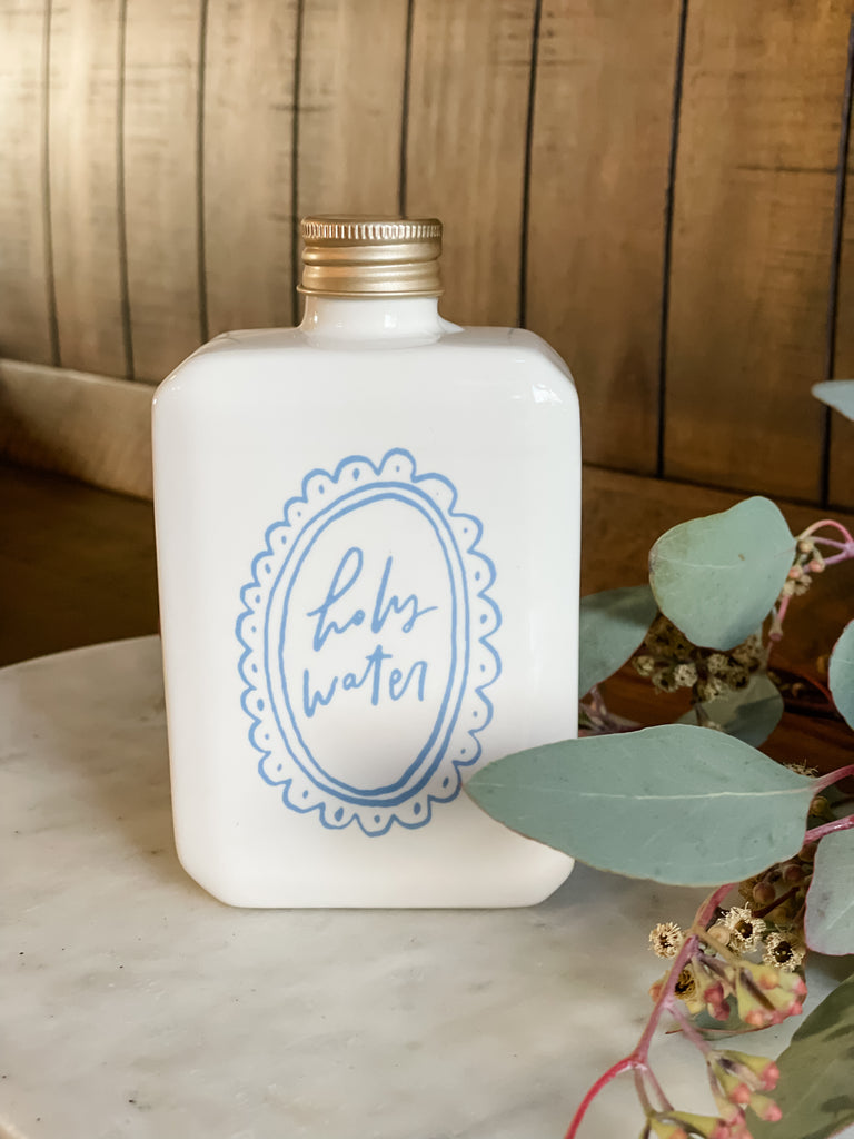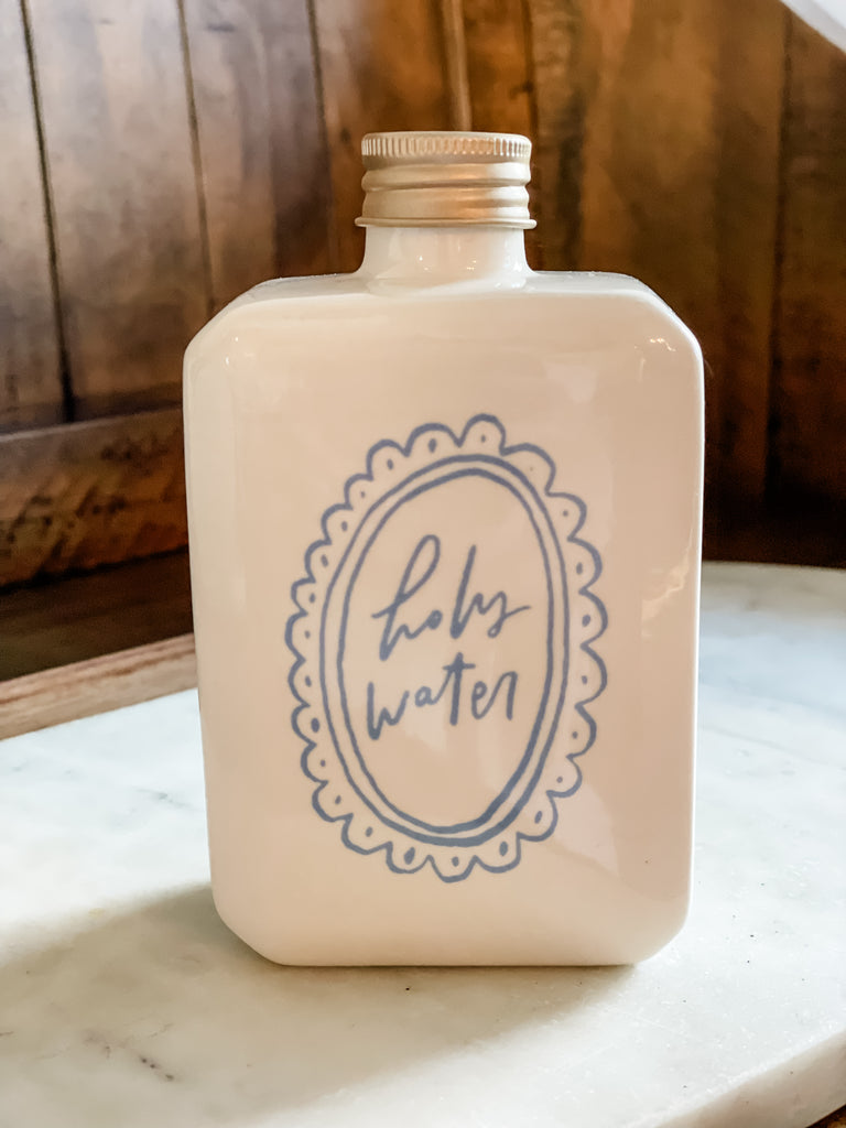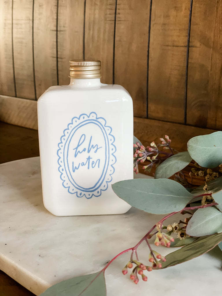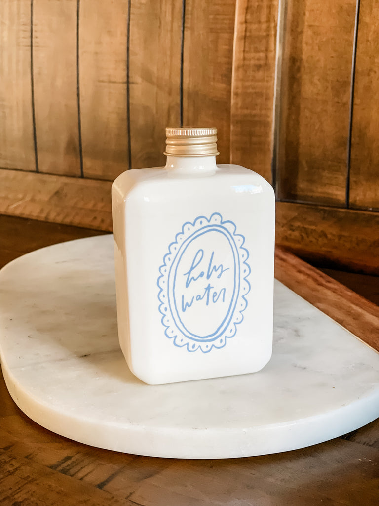 Our Ceramic Holy Water Bottle is a blend of elegance and spirituality for all. Crafted with care, the cobalt blue Holy Water illustration on the smooth ceramic exudes sophistication. This reusable bottle is not just a vessel, but a symbol of devotion, perfect for prayer or gifting on special occasions. The secure twist-on cap preserves the sanctity of the water. Elevate your spiritual journey with grace and embrace the divine with every splash of holy water.