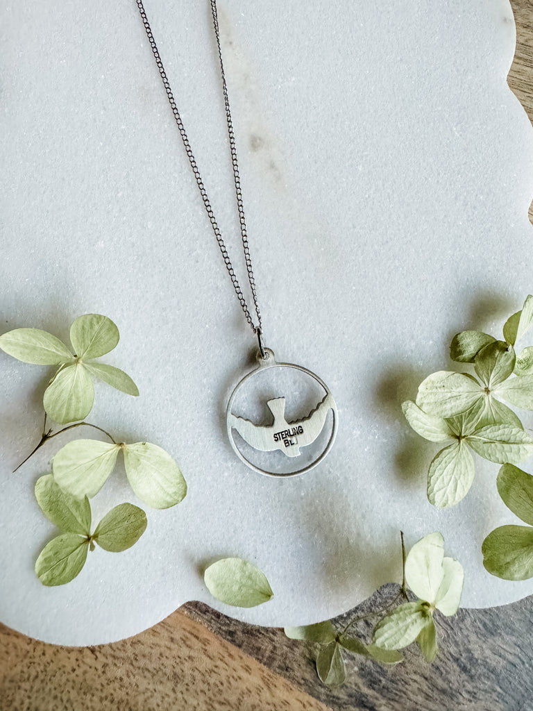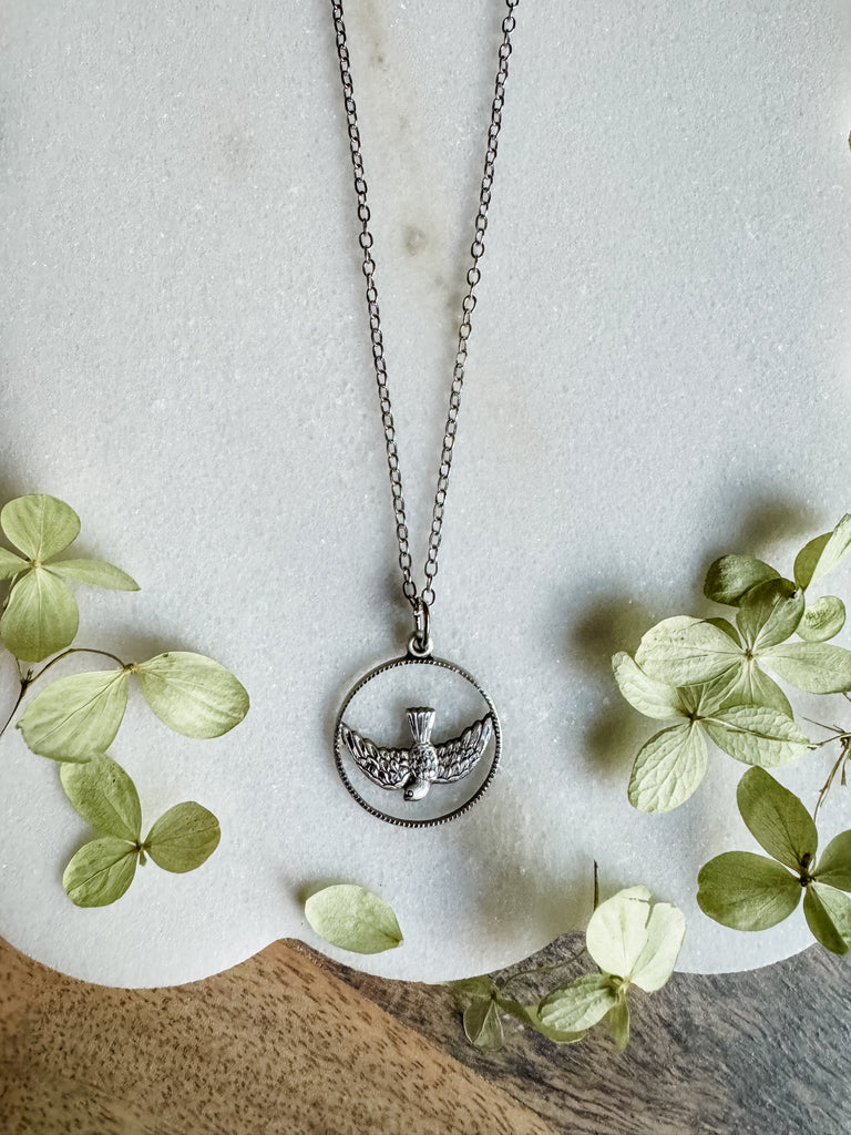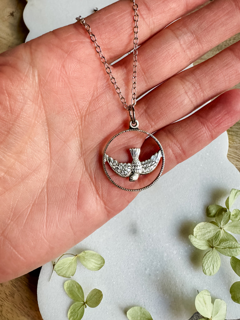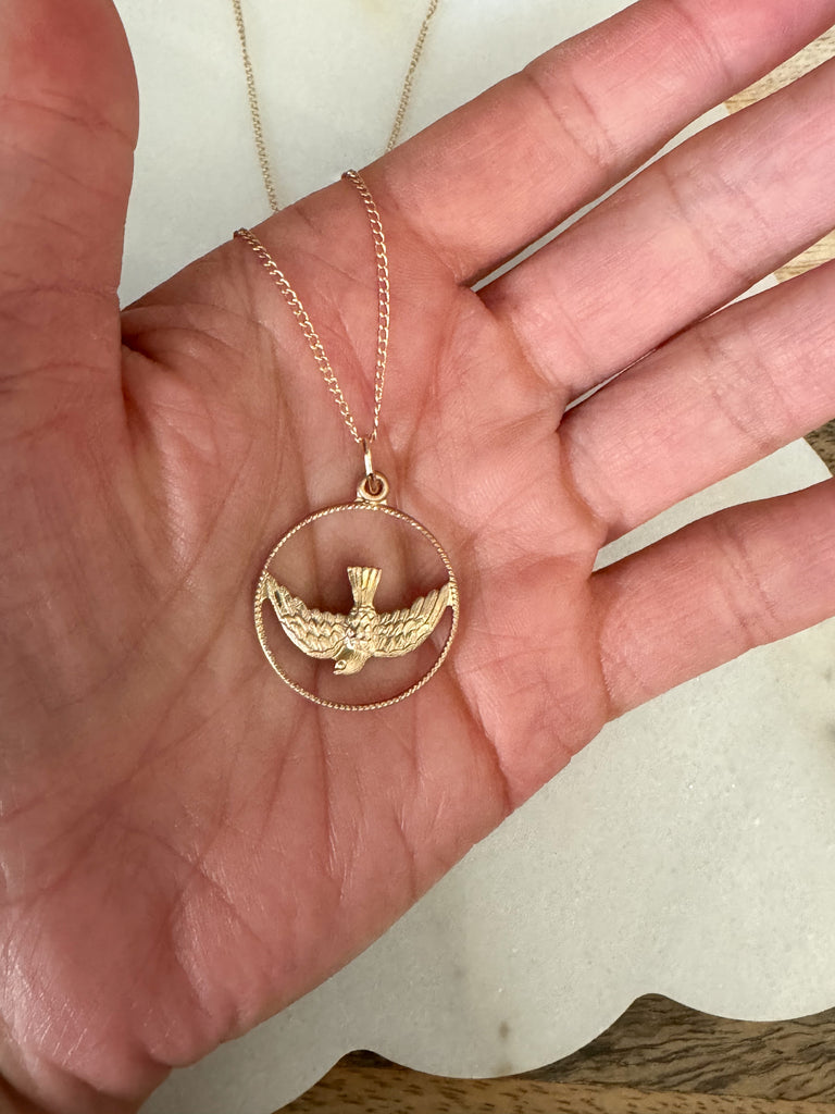 This delicate Holy Spirit is lightweight and beautifully detailed, even in its simplicity. It would make a lovely gift for Confirmation! It is also a fun piece to wear anytime we want to bring the Spirit with us!