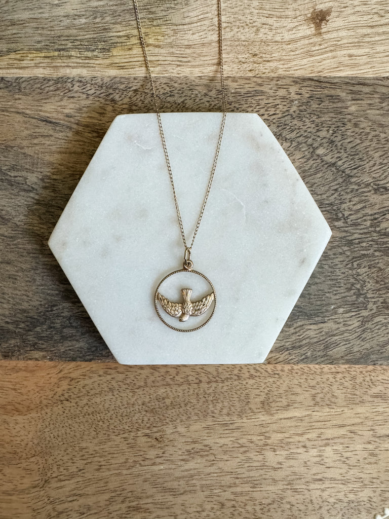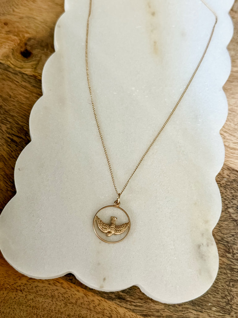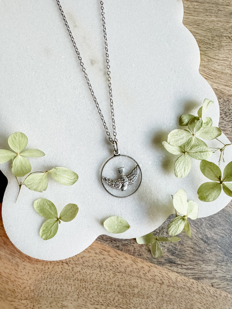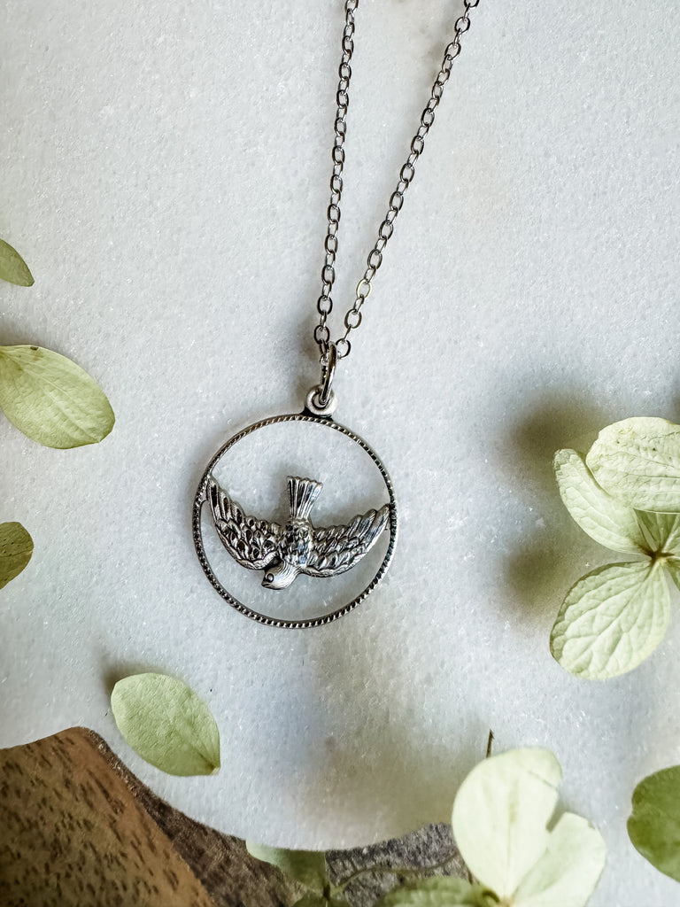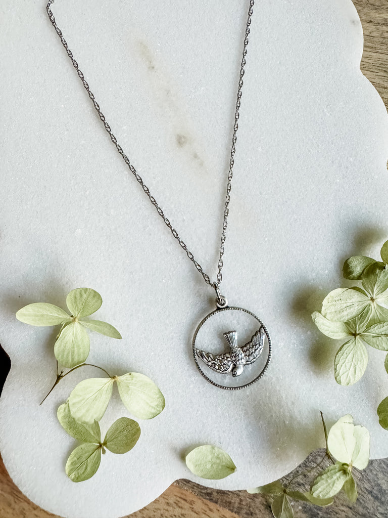 This delicate Holy Spirit is lightweight and beautifully detailed, even in its simplicity. It would make a lovely gift for Confirmation! It is also a fun piece to wear anytime we want to bring the Spirit with us!