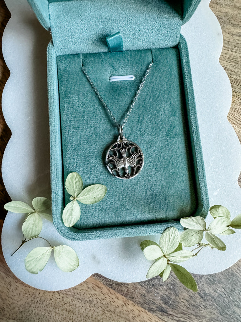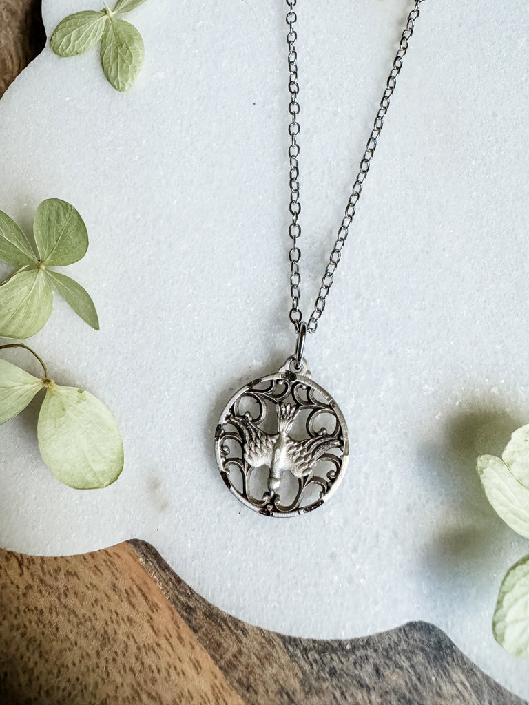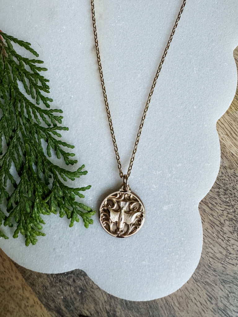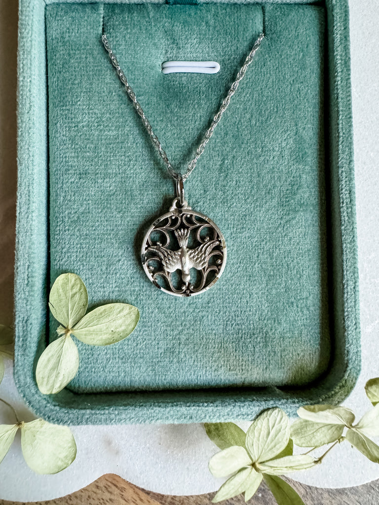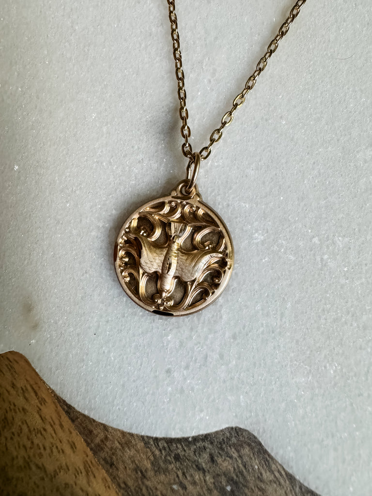 This stunning Holy Spirit medallion is beautifully detailed and makes a gorgeous statement of one's devotion to the Paraclete!