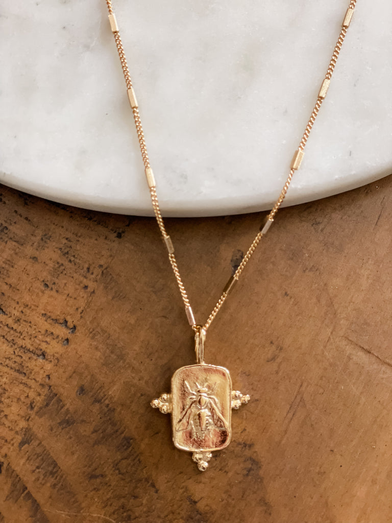Did you know the honeybee is an ancient Christian symbol? I love how our rich tradition draws from nature so many wonderful metaphors, and the bee is one of them. Bees are representative of Christianity in many ways: For its industrious habits the bee has become the symbol of activity, diligence, work, and good order. Even more beautiful is the symbol of the worker bee from the hive, since they, from inception, work diligently through their lives for the betterment of the hive without intra-species relations. This makes the bee an especially powerful symbol of purity and the beautiful Christian virtue of chastity. This necklace is stunning and makes a beautiful (subtle) statement. I also think it is a very special Confirmation gift to remind young women of a virtue worth practicing. What a lovely conversation this necklace would foster!