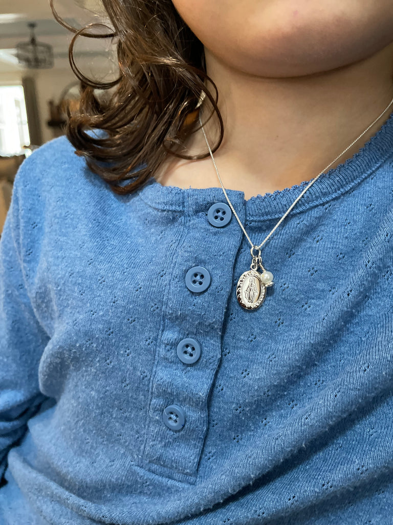 First Communion Miraculous Medal Necklace for Girls & Kids