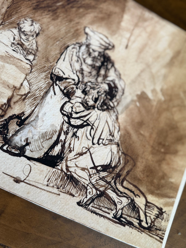 Before Rembrandt van Rijn painted his masterpiece oil painting of the Return of the Prodigal, he made hundreds of sketches in different mediums to work through not only the details of the painting, but also the depth of the subject he was portraying.
