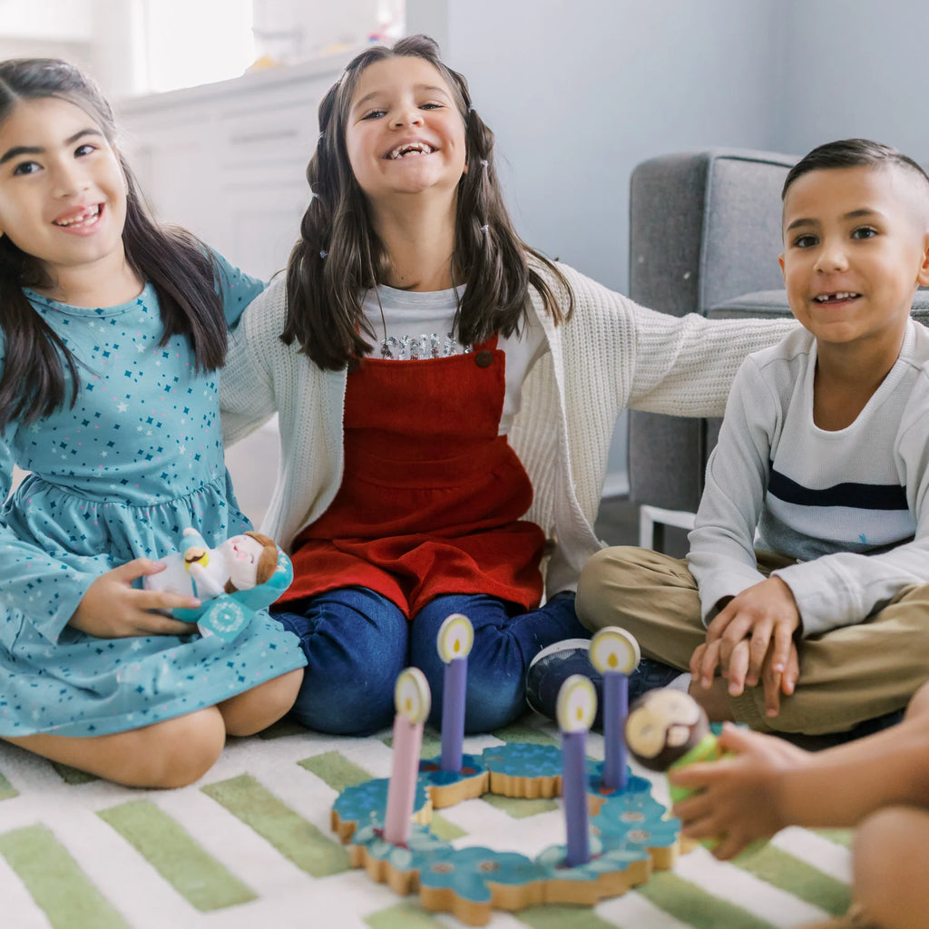 Journey through Advent and the Christmas season with our double-sided wooden puzzle wreath! Children can assemble the wreath, then place a wooden candle into each hole. On each Sunday of Advent, they can “light” another candle by inserting a wooden flame disk into the slot atop the candle. Then at Christmas, flip the wreath over and use the white candles to celebrate the joy of the season!