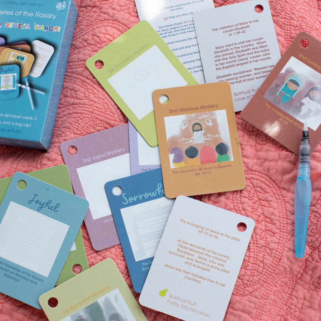 Mysteries of the Rosary Water Reveal cards- the perfect mass bag toy!