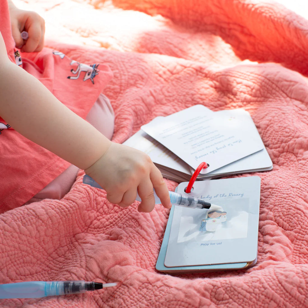 We love how fun and easy these water cards make it to teach children about the Rosary! Using colorful illustrations and child-friendly reflections, these cards are a fantastic way to explore the Biblical basis of the Rosary and reflect on the life of Christ. On the back of the cards you'll also find instructions on how to pray the Rosary, and the prayers of the Rosary!