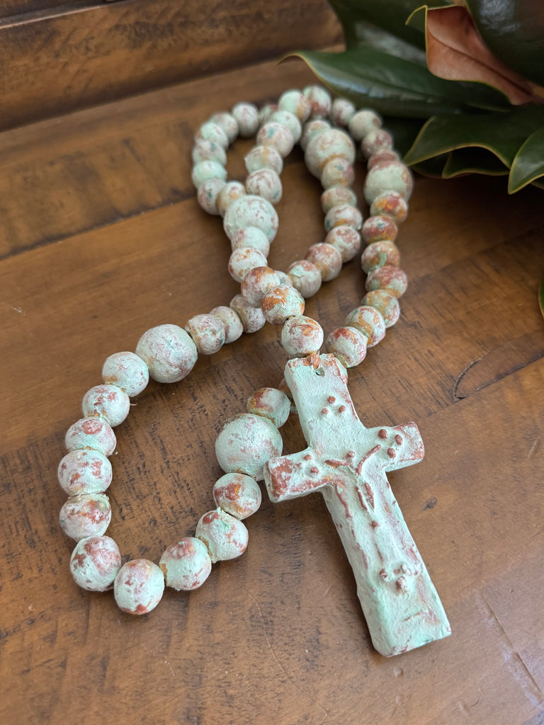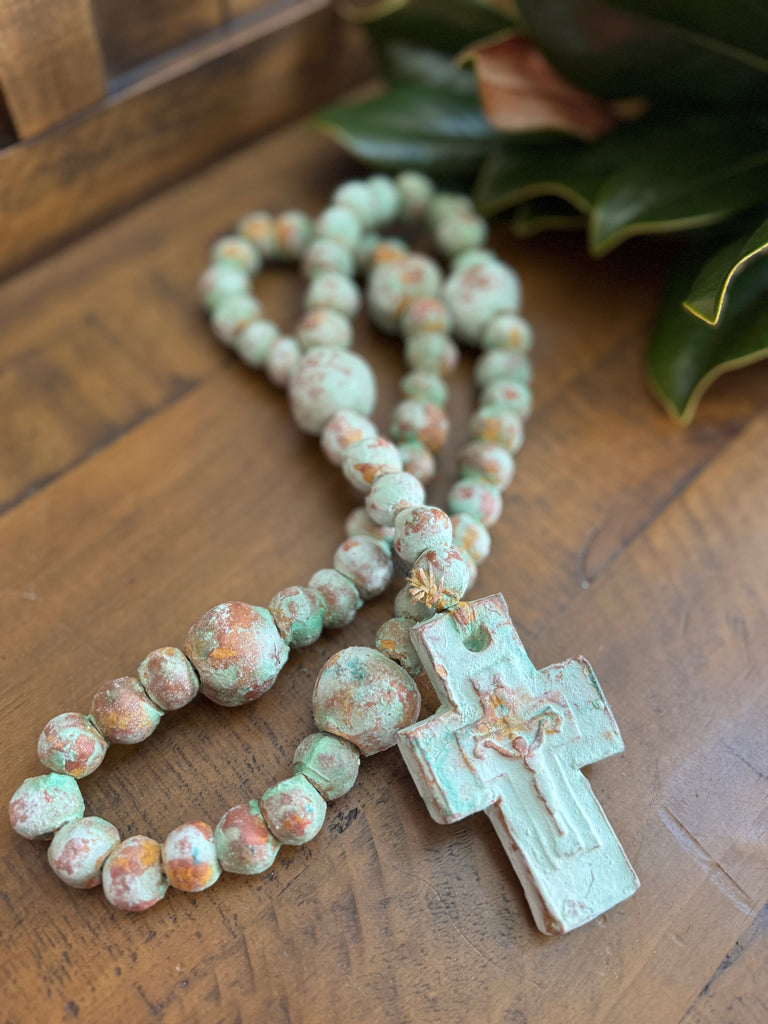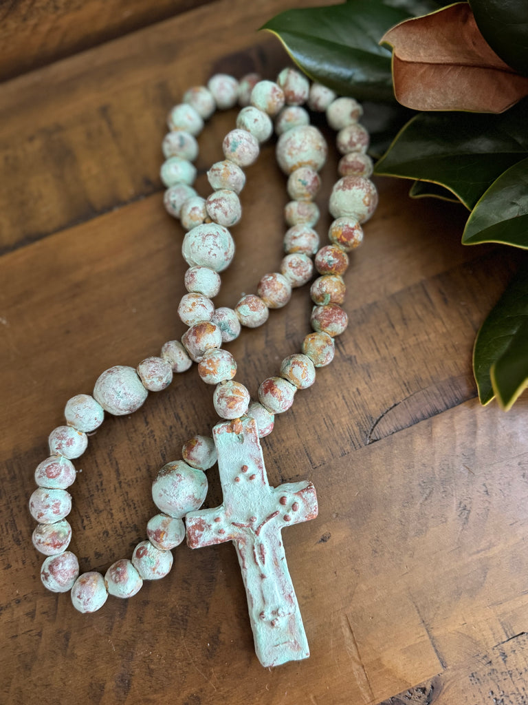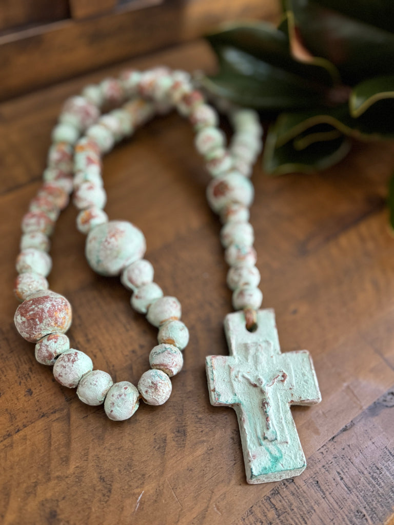 These handmade clay tabletop rosaries are one of our signature Inspired Living decorative items! I just love their rustic beauty, and how each rosary is unique and slightly different from another. These awesome rosaries are made completely by hand, by artisans that have learned the trade from their parents.