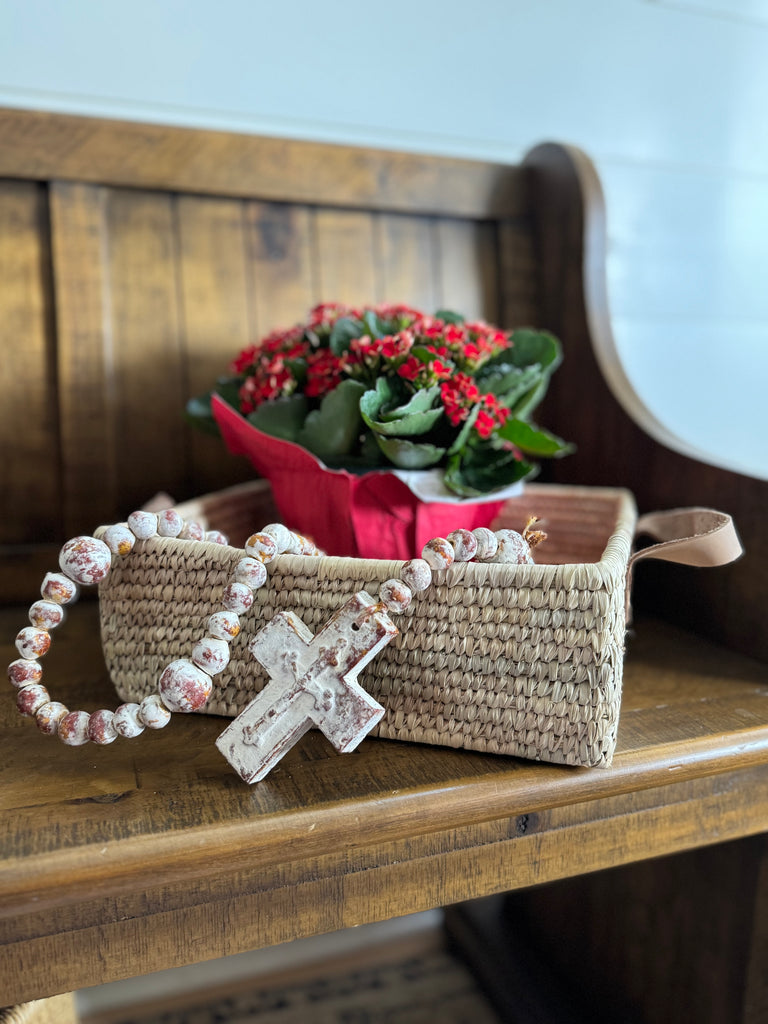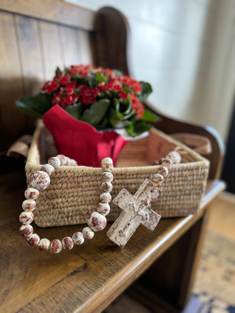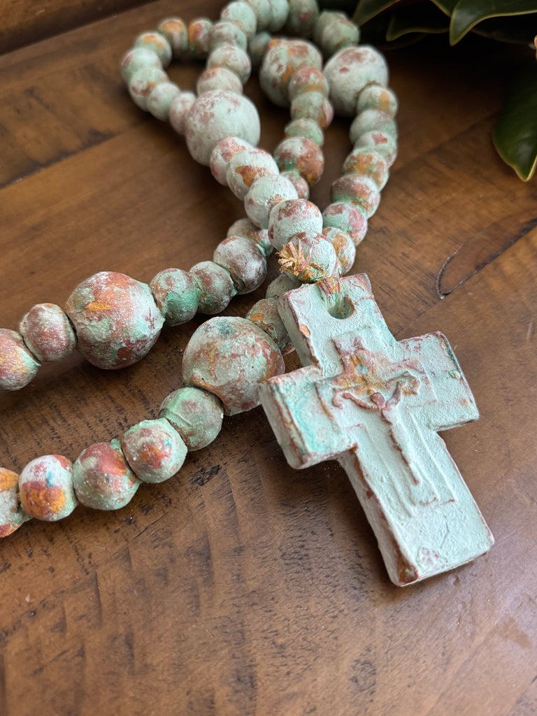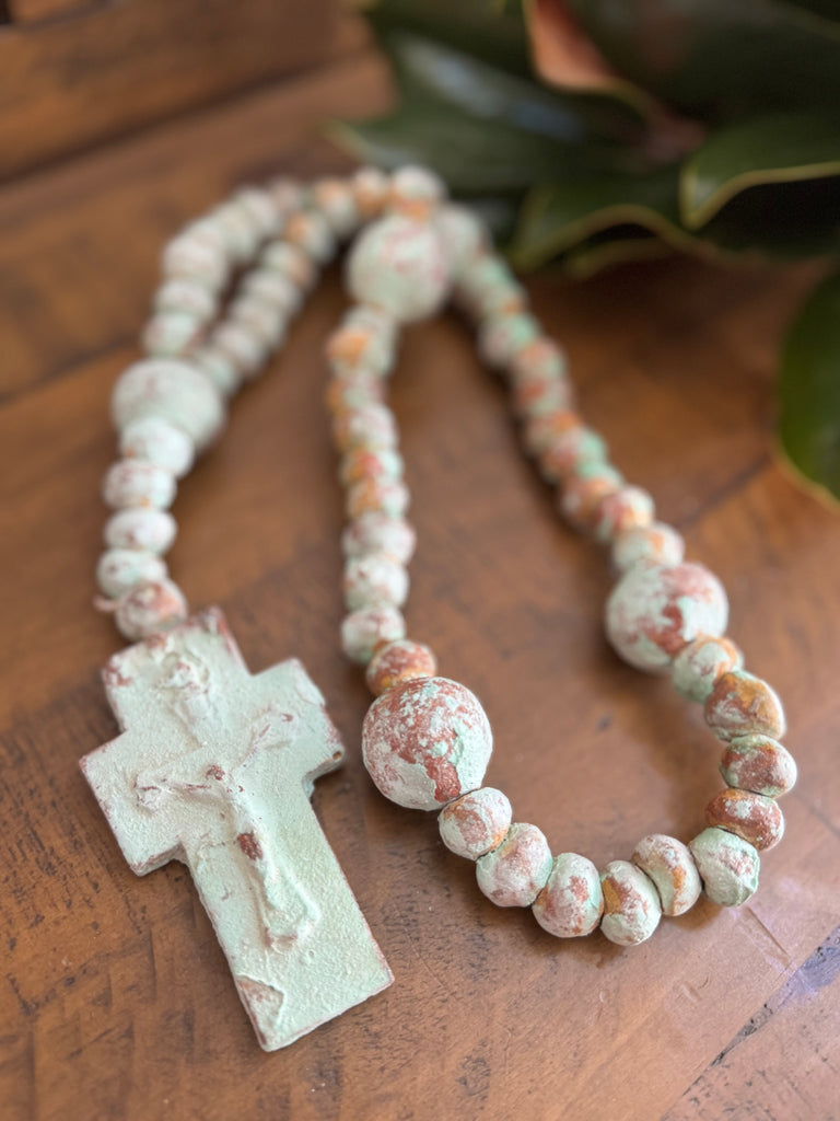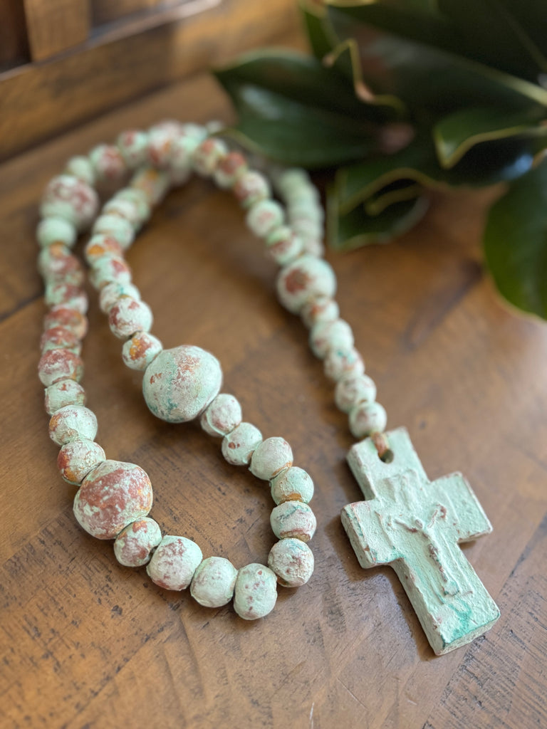 These handmade clay tabletop rosaries are one of our signature Inspired Living decorative items! I just love their rustic beauty, and how each rosary is unique and slightly different from another. These awesome rosaries are made completely by hand, by artisans that have learned the trade from their parents.