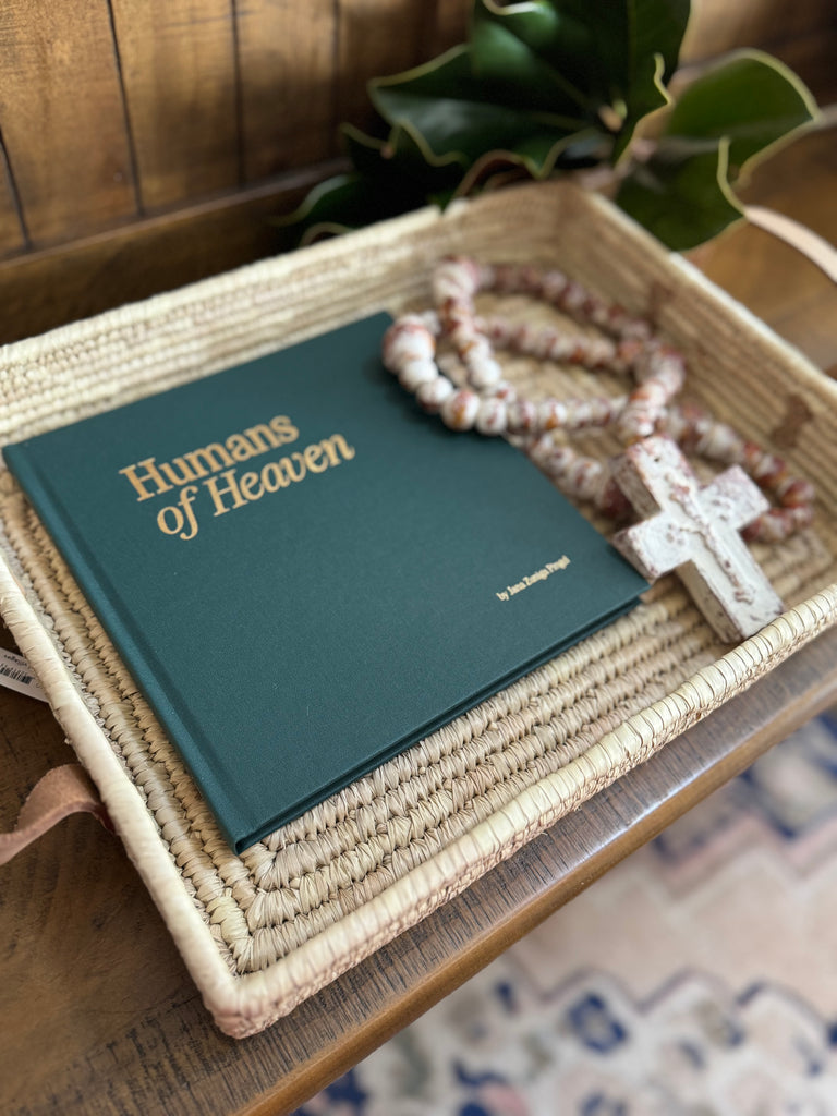 Displayed in our Rectangle Handled Basket and our Square Handled Basket with our Humans of Heaven book.
