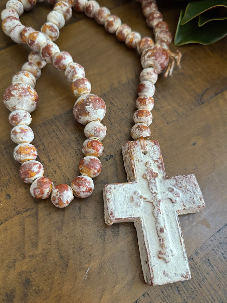 Details: Handmade clay beads with clay crucifix. Made by artisans in Mexico. Size, approximately 21" L