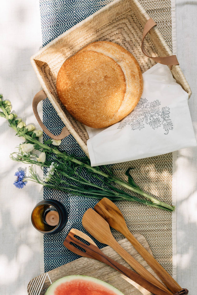 Set your table simply with this minimalist Square Handled Basket hand‒woven from date palm leaves by artisans working with Rishilpi.