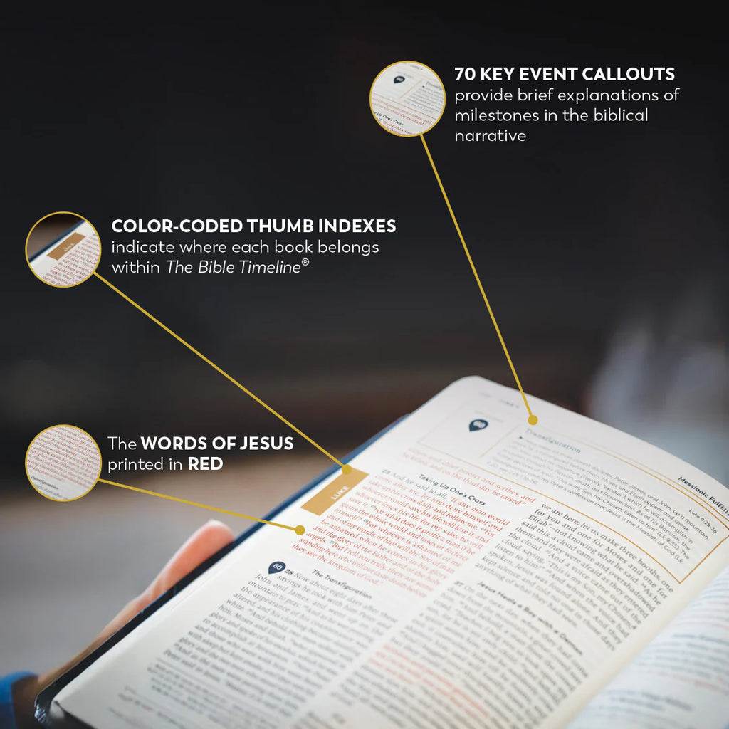 - Never miss an important moment in Scripture with 70 key event callouts that provide a brief description of milestones in the biblical narrative