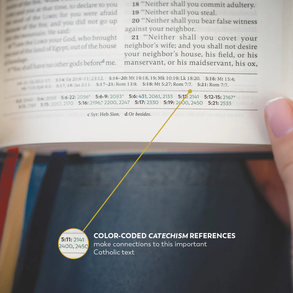- [NEW!] Make connections between the Catholic Faith’s two most important books with color-coded Catechism references according to the Foundations of Faith approach