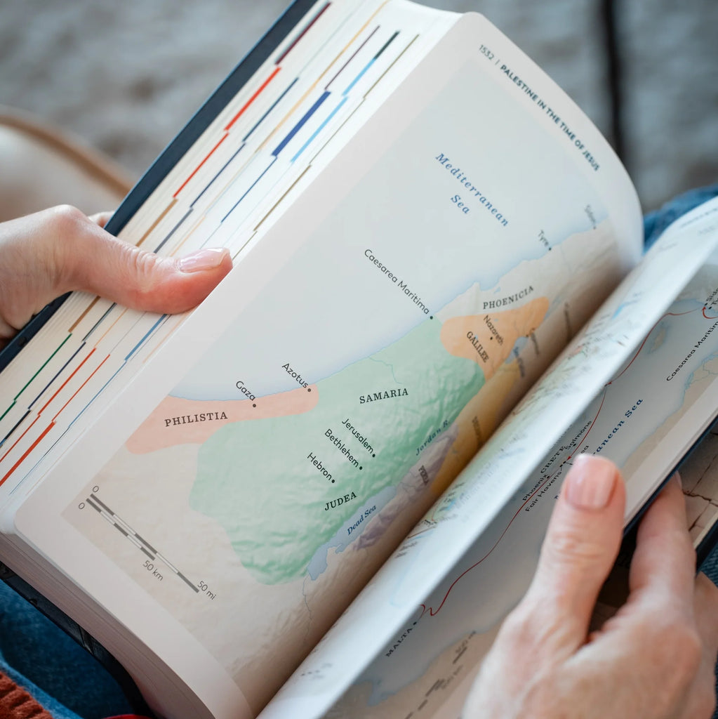 - [NEW!] Visualize the locations of key stories with 16 redesigned, full-color maps that bring the biblical story to life